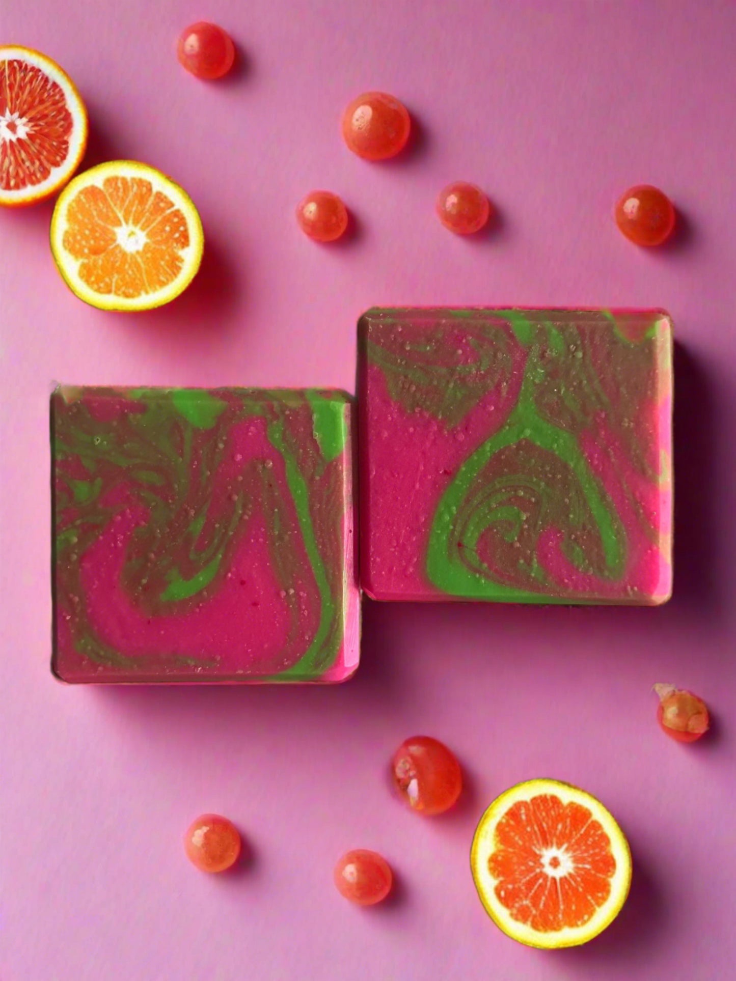 Ingredients : Olea Europaea, Cocos Nucifera, Elaeis Guineensis, Aqua, Sodium Hydroxide, Ricinus Communis, Canola Oil, Fragrance, Almond Oil Prunus Dulcis, Skin-Safe Colorants, Sodium Chloride, Bio-Glitter. Embedded’s and Toppers: Coconut Oil, Palm Oil, Safflower Oil, Glycerin, AquaWaterEau, Sodium Hydroxide, Sorbitol , Propylene Glycol, Sorbitan Oleate, Oat Protein, Skin-Safe Colorants, Fragrance.